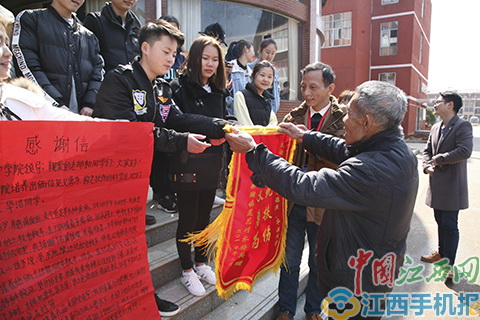 合影 如今,齐奶奶已经康复出院,行走自如。据齐奶奶的家属讲,医生诊断齐奶奶为右肩锁骨骨折,并是伴有高血压的老人,如果不是郭德燕、华洁两位同学及时把老人救出来并送医救治,将会危及生命。对于郭德燕、华洁两名同学勇敢救助齐梅英奶奶的行为,齐奶奶一家人抑制不住自己的感激之情,于3月14日给南昌职业学院送来了感谢信和锦旗,以表达一家的衷心谢意。(转自江西手机报) |