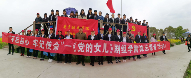 三月是掀起学雷锋、做雷锋高潮的雷锋月。音乐舞蹈系《党的女儿》剧组全体成员为了传承优良传统,保护环境,推进文明出行的道德风尚,在我系团委学生会的统一组织下,于2018年 3月24日,赴安义县油菜花基地开展“不忘初心 牢记使命”学雷锋志愿者服务活动。