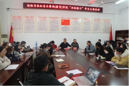 (音乐舞蹈学院 教育学院 段蓉报道)根据江西省委教育工委、省教育厅全面贯彻全国高校思想政治工作的会议精神,推进高校思想政治工作创新发展,围绕学生、关照学生、服务学生,开展以“五个一”体验为主要内容的“双体验日”活动,促进高校领导与学生“心贴心”,有效增强大学生对思想政治工作的获得感。12月17日,南昌职业大学副校长涂庆华来到音乐舞蹈(教育)学院与学生同学习同生活同实践,度过了充实而富有意义的时光。