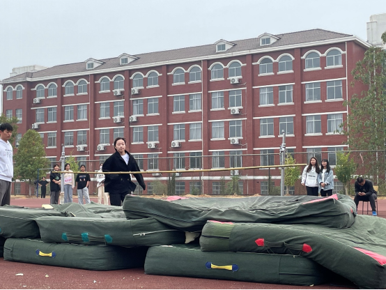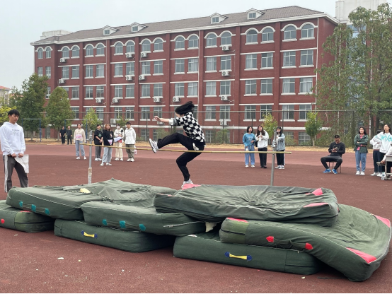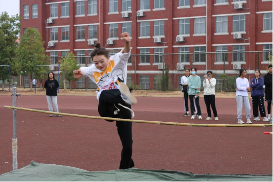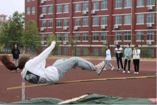 而在同一时刻另一边的女子跳高也在进行中。音乐舞蹈教育学院的女运动员们一次次的腾跃,每一次都是挑战,她们矫健的身姿凌空跃起,就像海燕一样轻盈。