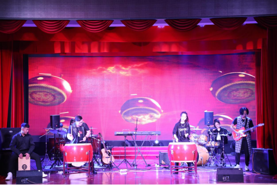 音乐会一开始,振奋人心的开场曲《环太平洋》便瞬间点燃了现场的氛围,两个中国大鼓恢弘的旋律,激起了我们心中熊熊烈火,赢得了在场同学阵阵掌声。紧接着各种节目轮番登场,异彩纷呈,魅力四射。一首《大风吹》将第一篇章的节目推入一个高潮,全场合唱,演出的同学轻快而灵动的歌声与音乐完美融合,无不感染在场的所有观众,仿佛大风吹出了我们不受束缚、勇往直前的心态。戴乐老师和学生的“斗鼓”是第一篇章中最精彩的一部分。他们用架子鼓把我们带到了另一个世界,使我们沉浸其中,心潮澎湃。架子鼓独奏《红色力量》不仅带我们重温了中国共产党走过的波澜壮阔的光辉历程,更是表达了中国共产党不畏血雨腥风,不怕艰难险阻,不惧威胁恐吓的红色力量。这股力量,一直引领我们奋斗与前行。一首《脚步》唱进了我们的心里,在安义我们一步一个脚印,走出了属于自己的脚步,歌声中唱出了我们带着父母的期盼,自己的梦想走出的脚步。最后,《我还有梦》将整场音乐会推入最高潮,全场观众与参演人员一起将氛围推入了最高点,并在现场热烈的掌声和欢呼声中缓缓落幕。