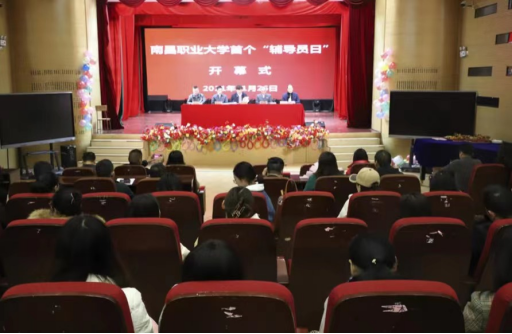 (音乐舞蹈学院 教育学院段蓉报道)为鼓励辅导员在学生管理中发扬主人翁精神,使每一位辅导员在学生日常管理工作中更好地发挥作用,我校决定将每年的11月26日确定为“辅导员日”。11月26日上午,音乐舞蹈(教育)学院全体辅导员在音乐演播厅参加了南昌职业大学首届“辅导员日”启动仪式。出席本次活动的人员有:南昌职业大学党委书记、督导专员卢仁顺,党委副书记、代理校长聂剑,纪检书记詹鸿生及相关职能部门、各学院负责人及我校全体专兼职辅导员。
