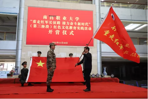 本讯网 音乐舞蹈学院(段蓉报道)为庆祝中国共产党成立100周年,弘扬伟大建党精神,让党史学习教育入脑入心,拓展思想政治理论课实践教学途径,南昌职业大学组织师生开展第三次“重走红军长征路”活动。11月30日,我院师生在图书馆一楼参加学校召开的“重走红军长征路 接力奋斗新时代”红色文化教育实践活动开营仪式。我院6名师生代表将身着红军军装,精神抖擞地踏上红军长征路。党委书记、督导专员卢仁顺出席并讲话,校领导詹鸿生、李立维参加仪式。