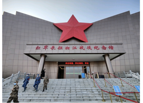 从讲解员的口中我们得知,1934年11月25日至12月2日,短暂而漫长的八个日夜里,湘江是一条流血的河,青山滴泪,悲壮如虹。宽阔的江面上,浓烈的硝烟中,红军穿着早已磨穿的草鞋,行走在浮桥上。头顶上,几十架飞机轰炸着、扫射着,行进的队伍中不断有人倒下,落入江中,一起漂浮在水面上的,还有那些死亡的骡马、散乱的文件、零落的钞票、圆圆的斗笠……一批一批将士倒下去了,一批一批将士又冲上来了。在全州旁边的湘江转弯处,江水缓缓流动,红军的遗体从上游漂下,密密麻麻,一眼望去,天是灰色的,湘江也是灰色的。从那时起,湘江成了一座血肉铸成的丰碑。从此,当地百姓“三年不饮湘江水,十年不食湘江鱼”,以此纪念为建立新中国壮烈捐躯的数万红军战士。