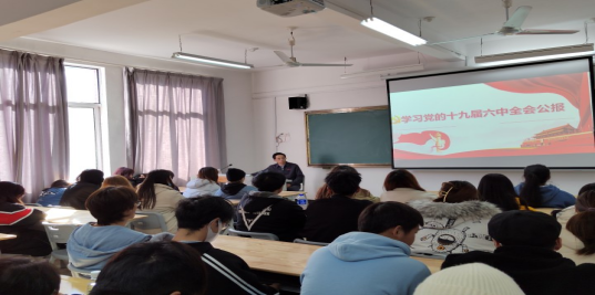 下午14:00,詹鸿生书记在经管实训楼307教室给音乐表演2103班同学们上了一堂思政课:詹书记从全会的基本情况、党的百年奋斗的重大成就、党的百年奋斗的历史经验以及不忘初心实现第二个百年奋斗目标的新赶考之路四个方面对党的十九届六中全会精神进行了详细解读。同学们表示:要深入学习宣传贯彻党的十九届六中全会精神,切实把思想和行动统一到全会精神上来,以史为鉴、开创未来,埋头苦干、勇毅前行,为实现中华民族伟大复兴贡献青春力量。