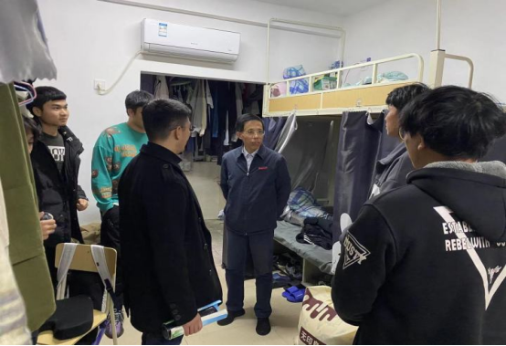 18:20,詹书记来到18栋学生宿舍楼,了解宿舍生活情况,询问学生们日常生活中遇到的问题并给予了生活建议,并叮咛学生们要一直保持宿舍卫生,现在仍处于疫情防控阶段,不能松懈。提醒同学们注意天气变化,注意保暖以及室内通风;还要安全用电,注意安全,禁止晚归;同时要注意保持好寝室的整洁。