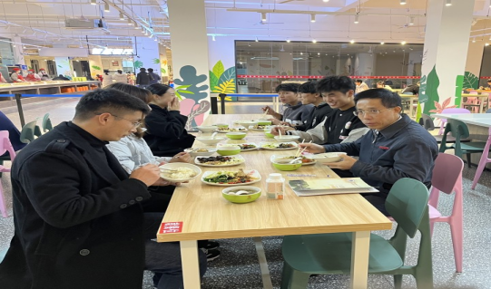 17:30,詹鸿生书记与学生们相约四食堂三楼教师专餐区共进晚餐,大家其乐融融。从江西菜品的辣到各自家乡美食口味,从高中的学习过程再到大学的学习变化,詹书记跟学生们聊得很尽兴,期间充满欢声笑语,场面十分温馨。