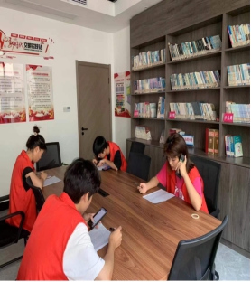 艺术小队成员们分成两组,对第三针未及时接种的居民打电话通知居民到指定地点接种疫苗,确保全覆盖无死角,稳步有序推进居民接种新冠疫苗第三针接种的工作。