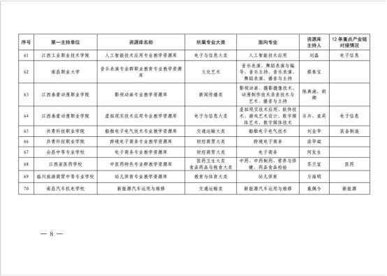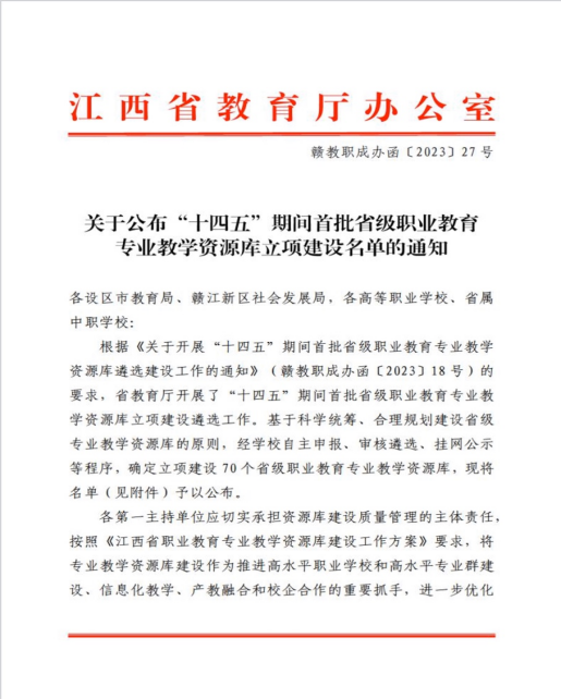 据悉,江西省职业教育专业教学资源库是为深入贯彻落实习近平总书记重要指示和全国职业教育大会精神,按照“深化改革、提质培优、完善体系、打造高峰”要求,围绕国家和我省战略性新兴产业、支柱产业和聚焦技术技能人才紧缺的职业领域进行遴选培育的建设项目。