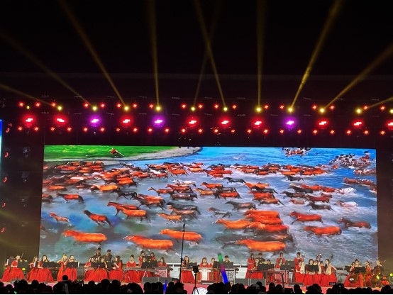 晚会在《战马奔腾》的器乐演奏中拉开帷幕。