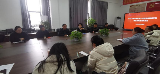本网讯 赵洁 报道 为深入贯彻落实习近平新时代中国特色社会主义思想,推动学院思想政治工作高质量发展,音乐舞蹈学院1月9日下午在505党员活动室召开了2023-2024学年第一学期课程思政建设推进会。音乐舞蹈学院院长解丽、党委书记盛世发及众党员教师参加会议,学院教学负责人蔡春宝主持会议。