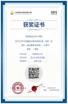 本网讯 通讯员 蔡春宝 报道 12月2日-3日,由江西省教育厅主办的2023江西省职业院校技能大赛(高职组)“声乐、器乐表演”赛项在九江职业大学举行,全省21所高职院校共派出63名选手参加了本次比赛。经过激烈角逐,我校音乐舞蹈学院学生陈小双、巫翔、李俊豪组成的参赛队荣获一等奖,陈波和王颖老师荣获优秀指导教师奖。