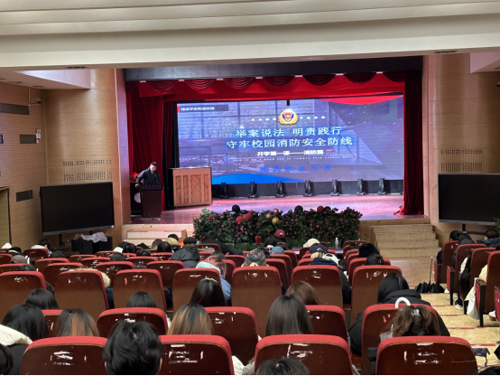 本网讯 陈思 报道 为进一步加强学校安全工作,增强学生消防安全意识,提高自救防范能力,2024年3月5日下午,我院特邀保卫处王凯老师为学生开展了“校园安全,你我守护,防患于未“燃””的消防安全知识专题讲座。