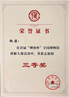 音乐舞蹈学院播音与主持专任教师赵洁在决赛中,以一篇《“天下状元”铭诗词人物图鎏金银盘》,讲述江西读书人精神风骨,让大家感受到了江西文化的独特基因,最终经过激烈角逐,荣获本次比赛志愿组三等奖。赵洁作为一名职教教师,一直坚持“以赛促教,以赛促学,以赛促改、以赛提质”的理念,将博物馆这所大学校里的知识研究好,利用好,运用到专业教学当中,给学生以民族自信、历史启迪,传播中华优秀传统文化。