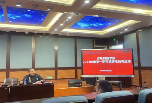 本网讯 邓洪 报道 为深入学习贯彻习近平新时代中国特色社会主义思想,加强学校师德师风建设工作,规范教师职业道德行为,提升教师职业道德水平,加强新形势下师德师风建设,2024年4月9日下午,音乐舞蹈学院全体教职工在音乐楼501会议室开展2024年度音乐舞蹈学院第一期师德警示教育学习活动。会议由党委副书记刘传利主持,全体教职工参加会议。