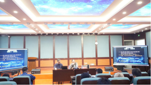 讲座正式开始前,秦庚云先生先跟我们简单解释了自己本次讲座主题的由来,他说到“一个作品的境界正是取决于其是否具有意味,能做到具有趣味、韵味,可勉强称作是一个好作品,但具有意味的作品,就一定是不一般的。”随后秦庚云先生打开了自己曾经作词的作品《遥远的小渔村》,用两种不同的谱曲风格去讲述艺术鉴赏能力的重要性,并根据当时发生在这首歌上的趣事,假设了一个情境,邀请在场的师生发表自己的看法。