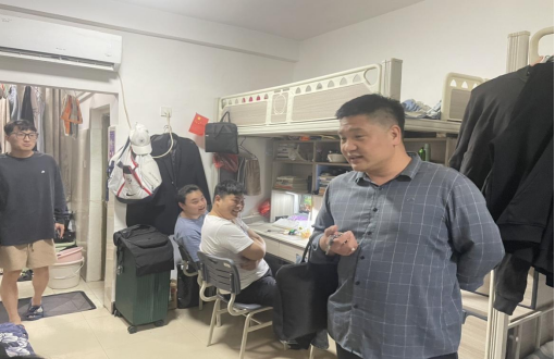 各位领导、老师深入宿舍,除关心同学们的日常学习及生活外,就实习工作对同学们进行了详细地交流,针对同学们的问题现场予以答复,并给予慰问和鼓励。在宿舍走访过程中,领导和老师们查看了宿舍卫生情况,排查宿舍安全隐患,强调同学们要增强安全防范意识,重视安全问题。